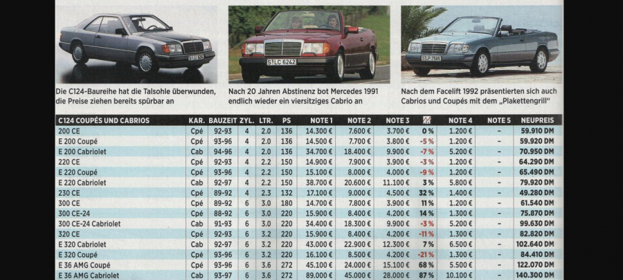 Mercedes Clasa E Coupe/Cabrio (W124): Tendințe de Preț